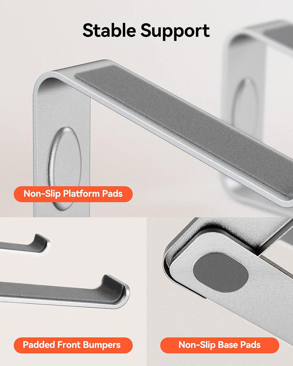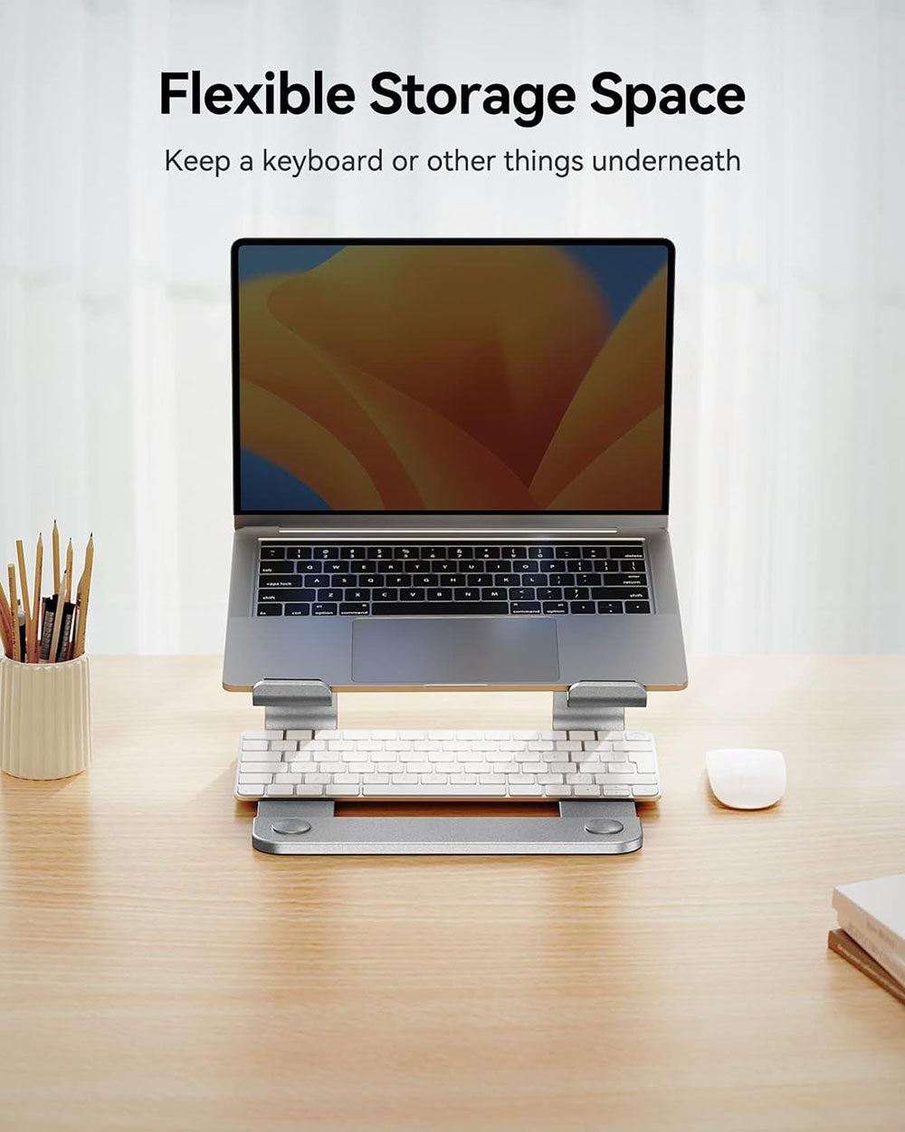 სადგამის დახმარებით ლეპტოპის სიმაღლე იქნება ოპტიმალური თქვენი მუშაობისთვის. მისი დახმარებით შეგიმცირდებათ დაწოლა ხერხემალზე და შეგიმცირებთ ტკივილს და გადატვირთვას. ასევე, ის დაეხმარება ლეპტოპს უკეთესად გაგრილებაში.