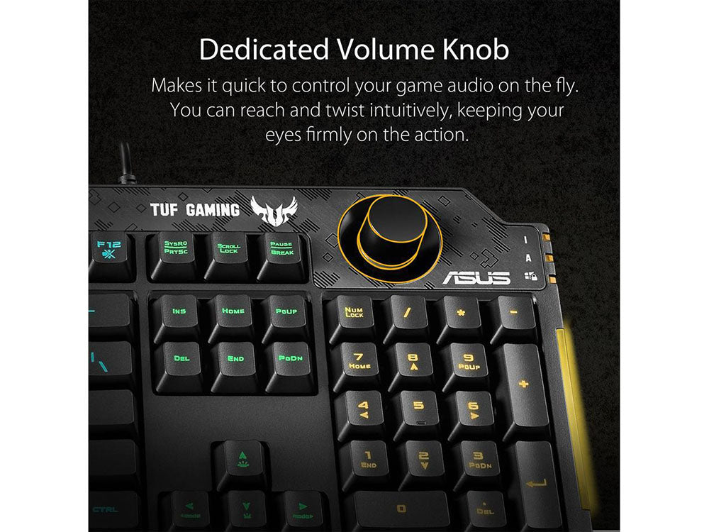 კლავიატურა თამაშებისთვის (გეიმინგ) ASUS TUF Gaming K1 განათებით, ხმის კონტროლერით