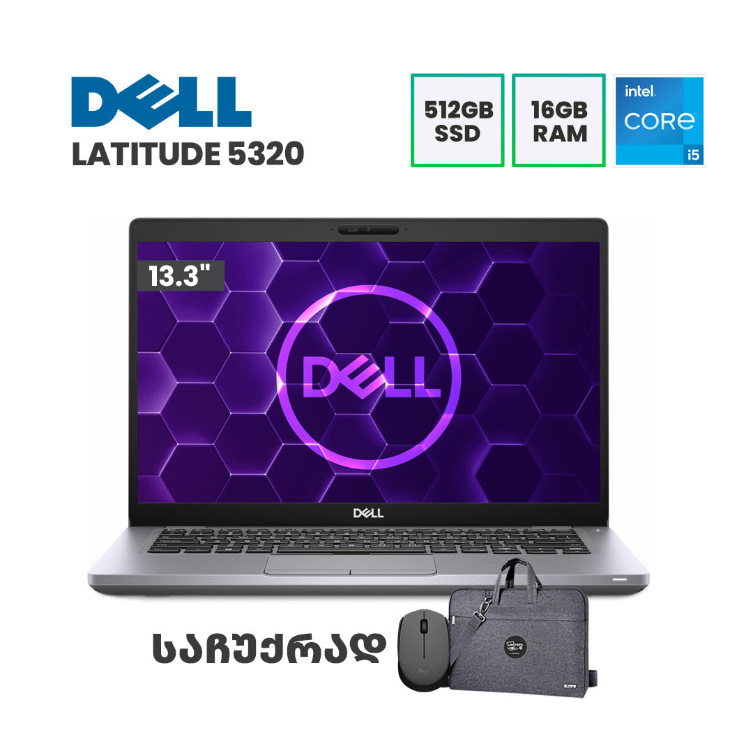 Dell-ის პორტატული, მსუბუქი (1.2კგ) და თხელი ბიზნეს ლეპტოპი Latitude 5320! 13.3" IPS FHD ეკრანი, 4 ბირთვიანი/8 არხიანი მე-11 თაობის i5 პროცესორით (i5-1145G7), 16GB DDR4 მეხსიერებით და ახალი 512GB M.2 NVME მყარი დისკით. ლეპტოპს მოყვება ლიცენზირებული Windows 11 Pro.