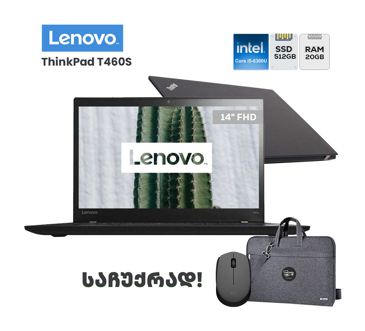 Lenovo-ს თხელი, მსუბუქი (1.36 კგ) ბიზნეს ლეპტოპი ნებისმიერი სირთულის საქმისთვის. ThinkPad T460S აქვს მე-6 თაობის i5 პროცესორი, 20GB DDR4 მეხსიერება და 512GB SSD (შესაძლებელია 1TB შეძენა) მყარი დისკი. აქვს 14"-იანი FHD ეკრანი. ლეპტოპი საუკეთესოა საქმისთვის და მოგზაურობისთვის, სწავლისთვის (მათ შორის სკოლისთვის). ლეპტოპს მოყვება ლიცენზირებული Windows 11 Pro.