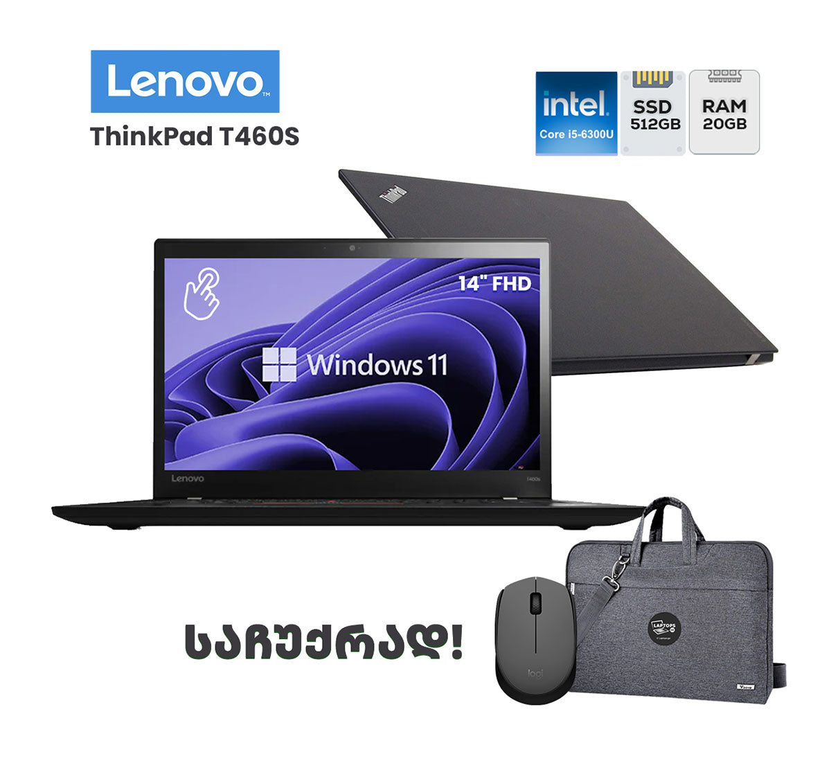 Lenovo-ს თხელი, მსუბუქი (1.36 კგ) ბიზნეს ლეპტოპი ნებისმიერი სირთულის საქმისთვის. ThinkPad T460S აქვს მე-6 თაობის i5 პროცესორი, 20GB DDR4 მეხსიერება და 512GB SSD მყარი დისკი (შესაძლებელია გაზრდა). აქვს 14"-იანი სენსორული TOUCH SCREEN FHD ეკრანი. ლეპტოპი საუკეთესოა საქმისთვის და მოგზაურობისთვის, სწავლისთვის (მათ შორის სკოლისთვის). ლეპტოპს მოყვება ლიცენზირებული Windows 10/11 Pro.