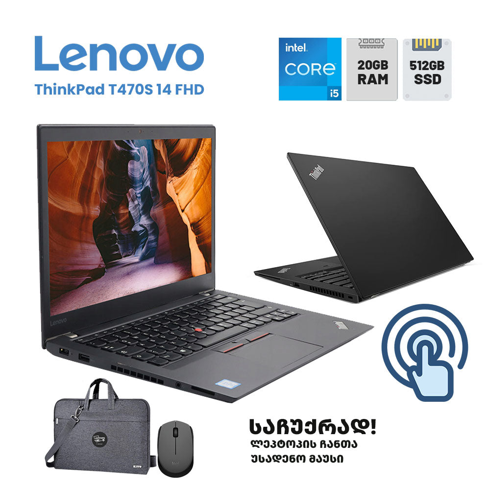Lenovo-ს ძლიერი, მსუბუქი ბიზნეს ლეპტოპი სენსორული 14"-იანი FHD ეკრანით Lenovo ThinkPad T470S ნებისმიერი ტიპის საქმიანობისთვის. მისი წონაა მხოლოდ 1.35კგ. აქვს მე-7 თაობის i5 პროცესორი, 20GB DDR4 RAM მეხსიერება და 512GB SSD მყარი დისკი. ლეპტოპს აქვს ლიცენზირებული Windows.