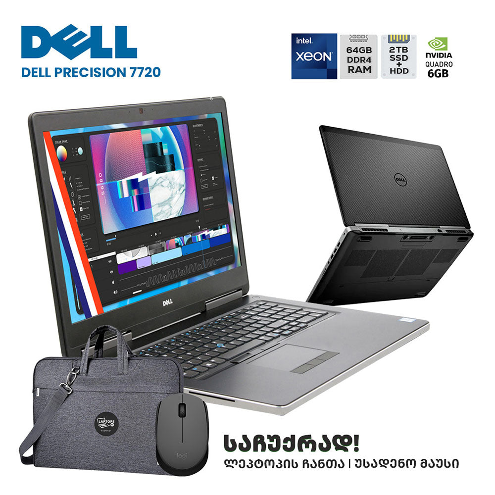 DELL-ის ძლიერი სამუშაო ლეპტოპი (Workstation) განსაკუთრებული მონაცემებით! 17.3" FHD ეკრანი, 4 ბირთვიანი/8 არხიანი Intel® Xeon® პროცესორით (E3-1535M V6), 64GB DDR4 მეხსიერებით და 1TB M.2 NVME + 1TB HDD მყარი დისკებით (სულ 2TB მყარი დისკი!).