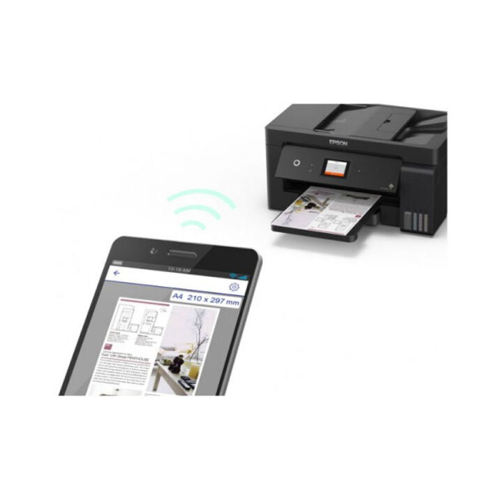 მრავალფუნქციური პრინტერი (ფერადი, ჭავლური) Epson EcoTank L14150 Inkjet Printer - C11CH96404. საუკეთესოა ოფისისთვის, ბიზნესისთვის. გააჩნია ფაქსის, ბეჭდვის, სკანირებისა, კოპირების ფუნქცია. პრინტერის რეკომენდირებული ყოველთვიური მაქსიმალური დატვირთვა არის 50 000 გვერდი. პრინტერის ქაღალდის ფორმატია - A3. პრინტერს მოყვება 4 ცალი შავი და ფერადი მელნები.